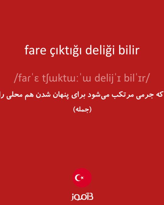 معنی تحت‌اللفظی عبارت fare çıktığı deliği bilir "موش سوراخی که بیرون می‌آید را می‌داند" است که منظور از آن "کسی که جرمی مرتکب می‌شود برای پنهان شدن هم محلی را دارد و می‌داند خود را فوراً کجا قایم کند" می‌باشد.