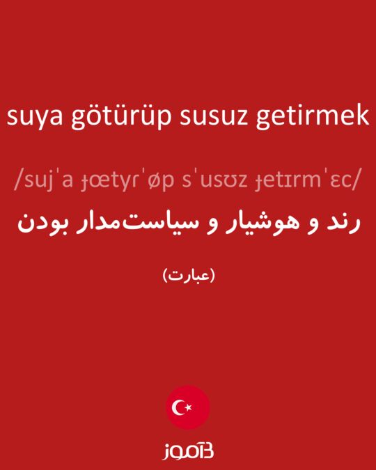 معنی تحتاللفظی عبارت suya götürüp susuz getirmek "به آب بردن و تشنه آوردن" است و منظور از آن "رند و هوشیار و سیاستمدار بودن" میباشد و معادل فارسی آن "لب چشمه بردن و تشنه برگرداندن" است.